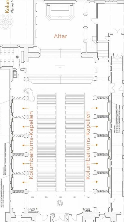 Das Kolumbarium ist in den beiden Seitenschiffen der Gelöbniskirche untergebracht.